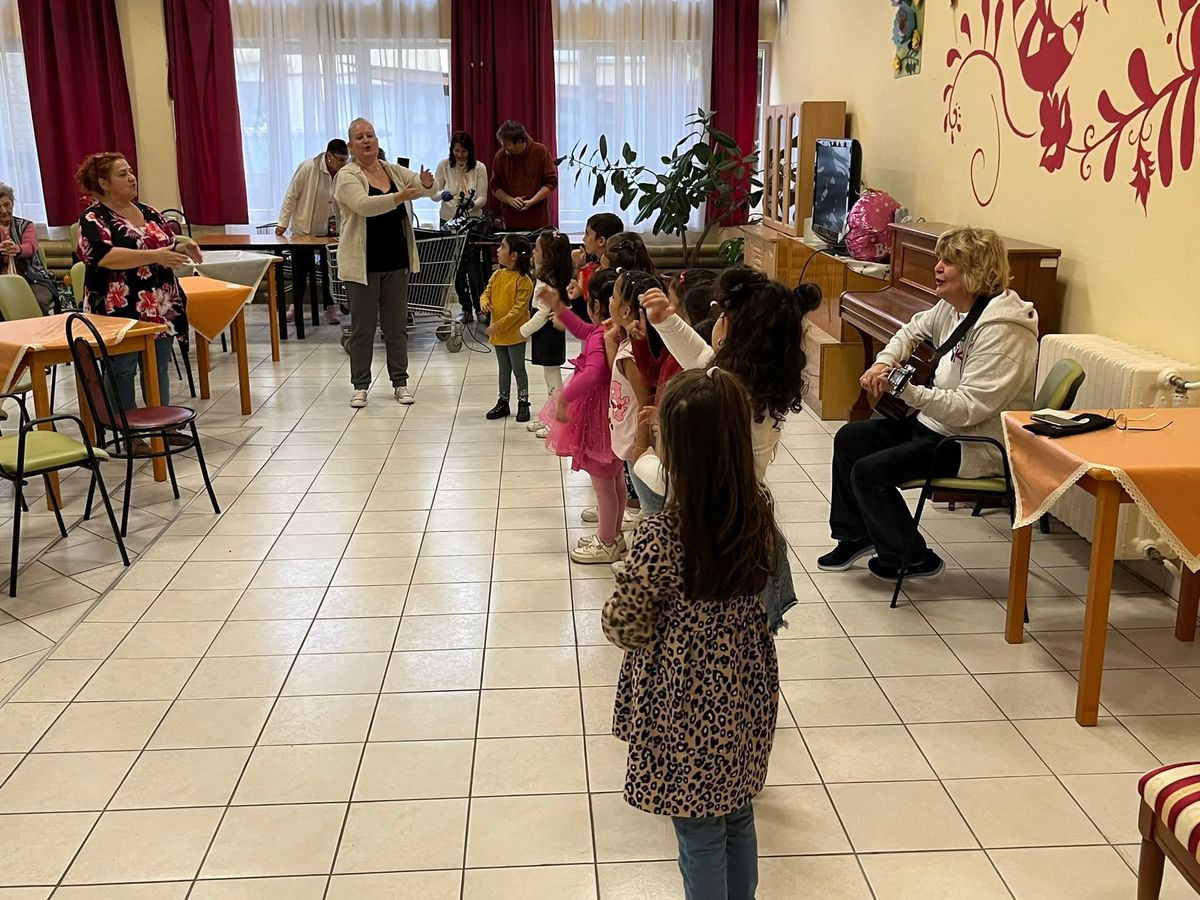 A gyerekek izgatottan készültek erre a napra: dalokkal, versekkel és tánccal köszöntötték az otthon lakóit.