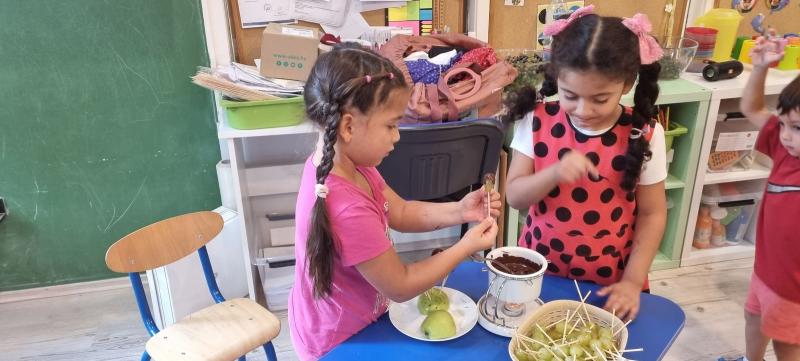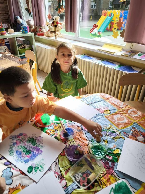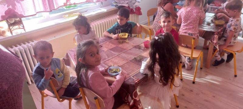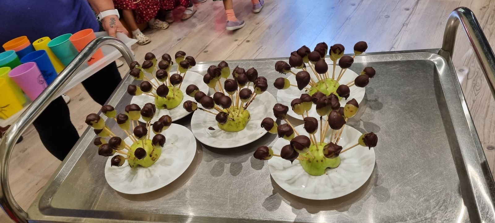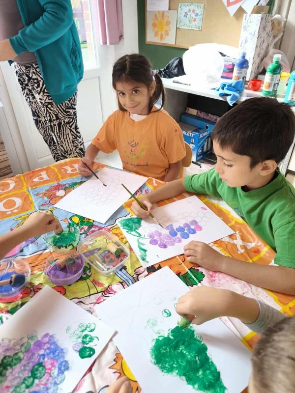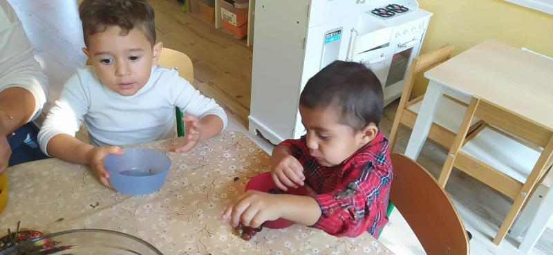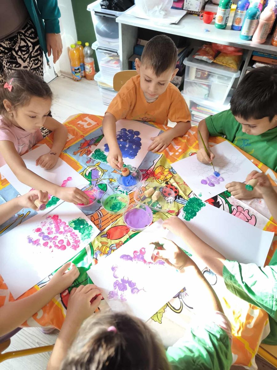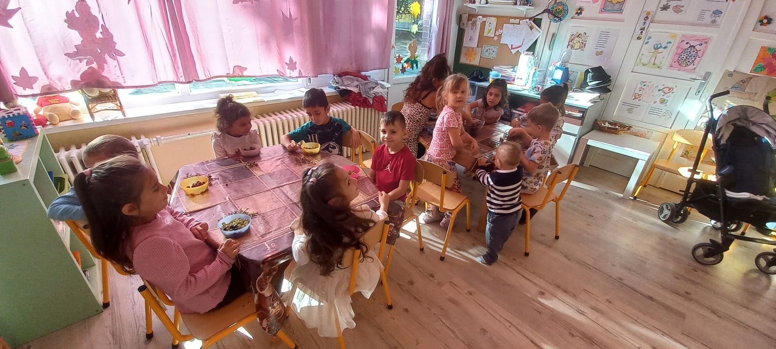 A szülők által hozott szőlőt dadus néni segítségével alaposan megmostuk, majd leszemeztük, és egy nagy tálban gyűjtöttük össze. Eközben őszi verseket szavaltunk, dalokat énekeltünk, s közben nem álltuk meg, hogy ne kóstoljunk bele a fürtökbe, kíváncsian hasonlítva az ízeket, színeket, fürtméretet. Előkerültek a kedvelt szüreti dalos játékok is, mint a „Lipem-lopom a szőlőt” és az „A kállói szőlőbe”.