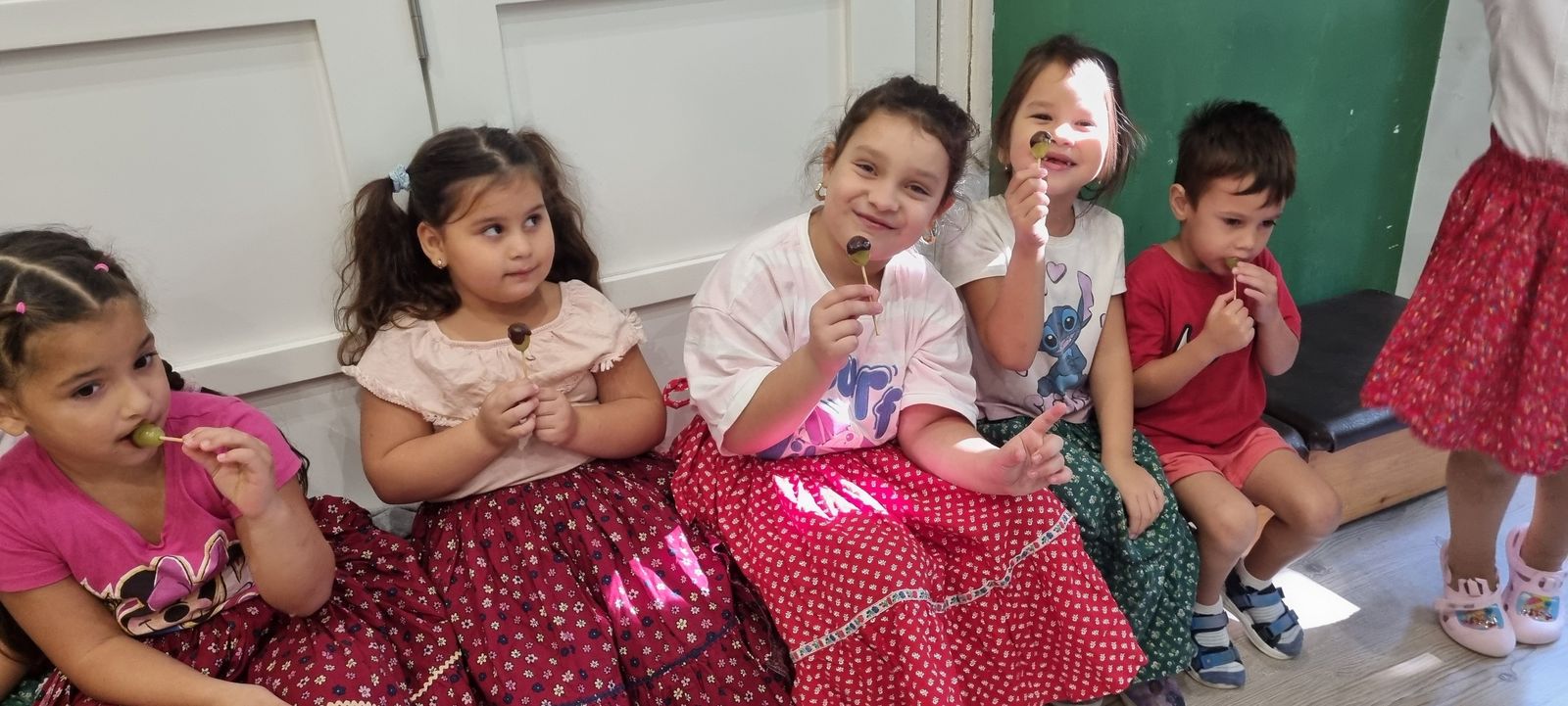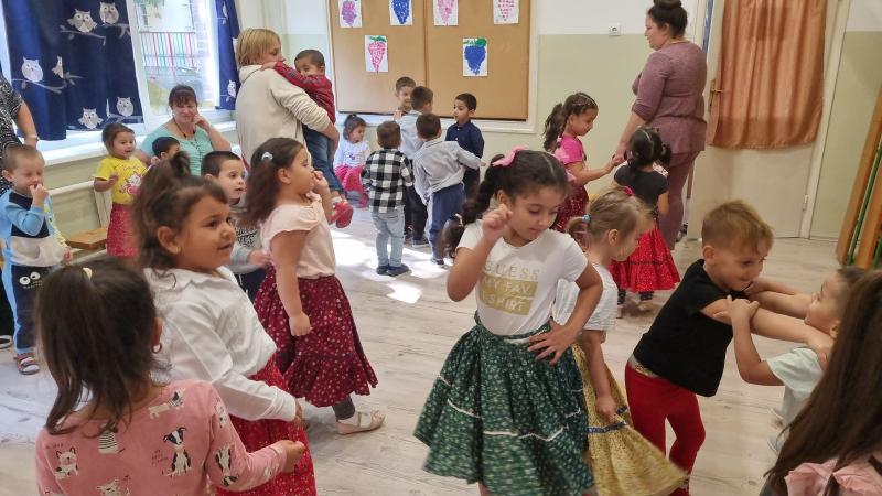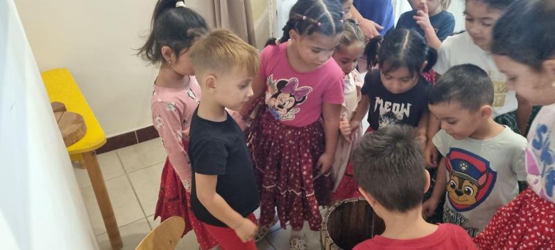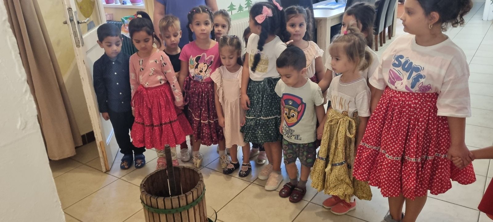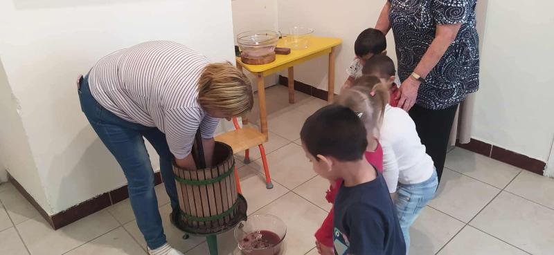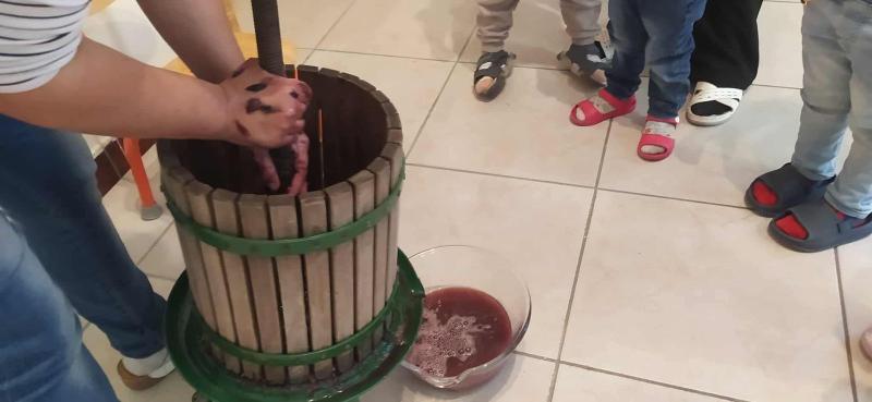 A szőlő darálása és préselése minden óvodás számára igazi élmény volt: izgatottan forgatták a darálót, figyelve, ahogy a must lassan lecsorog a kancsókba. Az édes must mellé friss pogácsát kínáltunk. Ezúton is köszönjük a szülőknek, hogy szőlővel járultak hozzá az esemény sikeréhez!